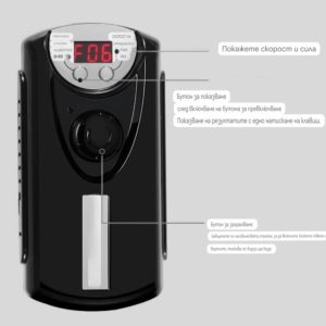 Контрол на скоростта с педал и ръчно. Изработена от неръждаема стомана.Съдържа 6 пили . Работи тихо без вибрации