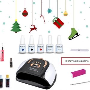 Комплект за гел лак ,,Коледна Мечта”с UV/LED лампа SUN C4-256W+подарък