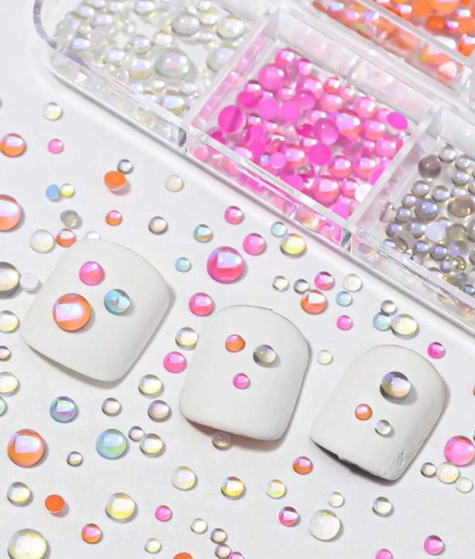 -Оформете маникюр по ваше желание и форма покриите с гел лак или лак по желание след завършване на маникюра прикрепете внимателно декорацията с гел или акрил с помоща на пинсети.
