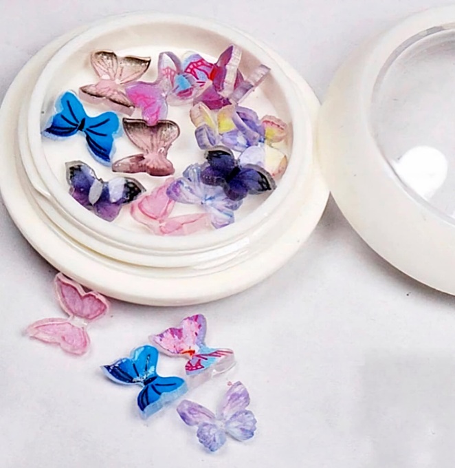 3D цветни пеперуди за декорация на маникюр в кутийка-10бр.