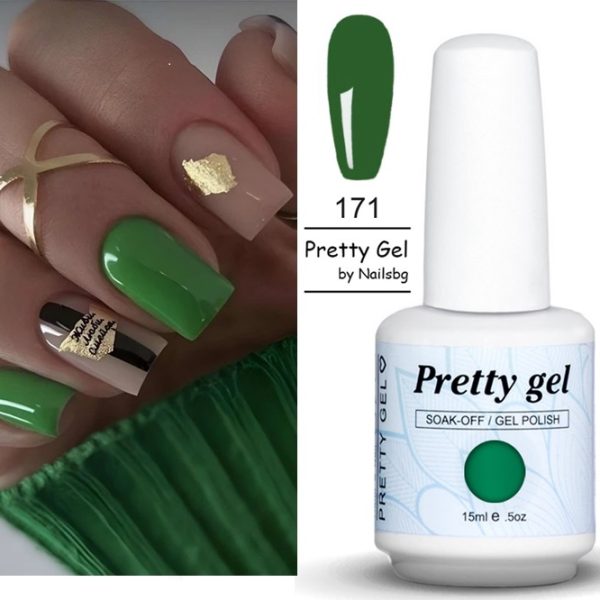 Гел лак Pretty 171 „Тревисто зелено“ е ярък и свеж зелен нюанс с естествен тревист оттенък. Цветът е жизнен, модерен и идеален за пролетни и летни визии.