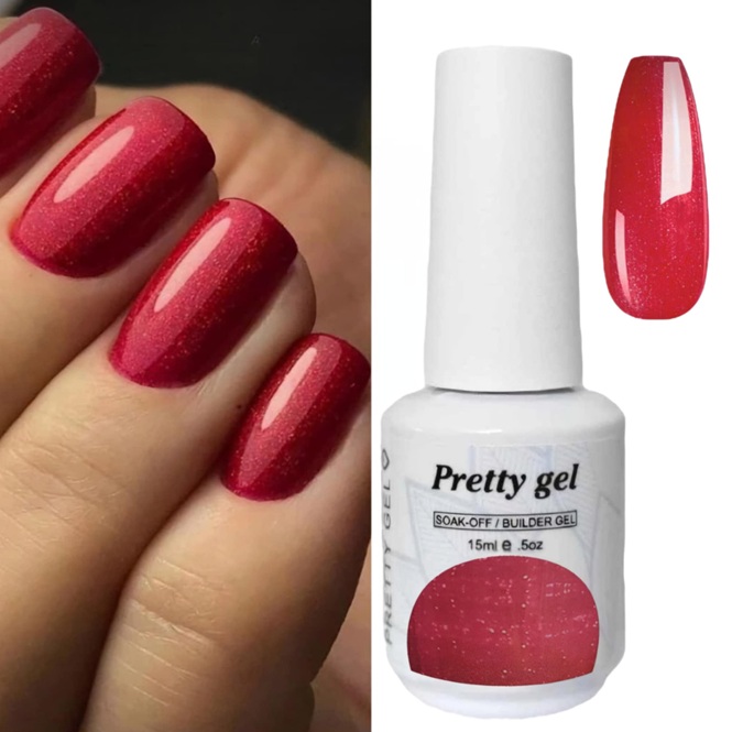 Гел лак Pretty 243/488 „Искряща рубина“ е класически наситен червен нюанс с фини блестящи частици, които създават деликатен искрящ ефект и придават дълбочина на цвета.