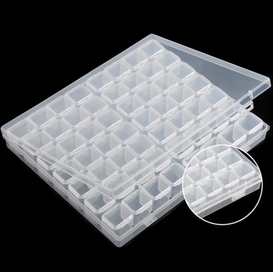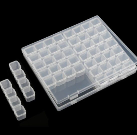 Кутия с 56 отделни контейнерчета за декорации с капачета.
