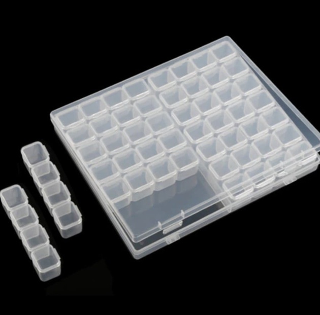 Контейнер за декорации с 56 отделни кутийки Контейнера е подходящ за всякакви видове декорации и бижута.