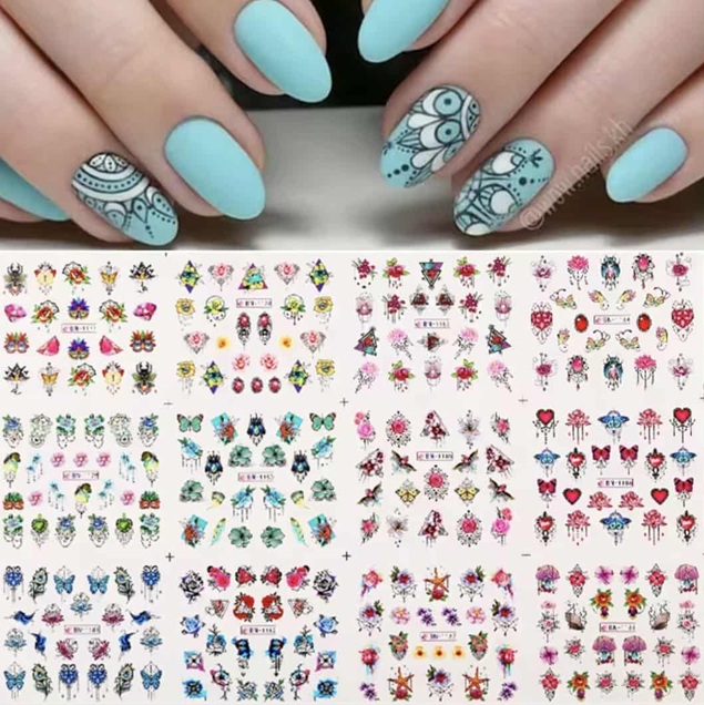 Начин на използване: Нанесете база и цвят по избор изрежете желаният елемент от ваденката намокрете го внимателно с пинсета отделете хартиеният слой приложете върху нокътната плочка и притиснете внимателно за да няма балончета завършете с топ лак.