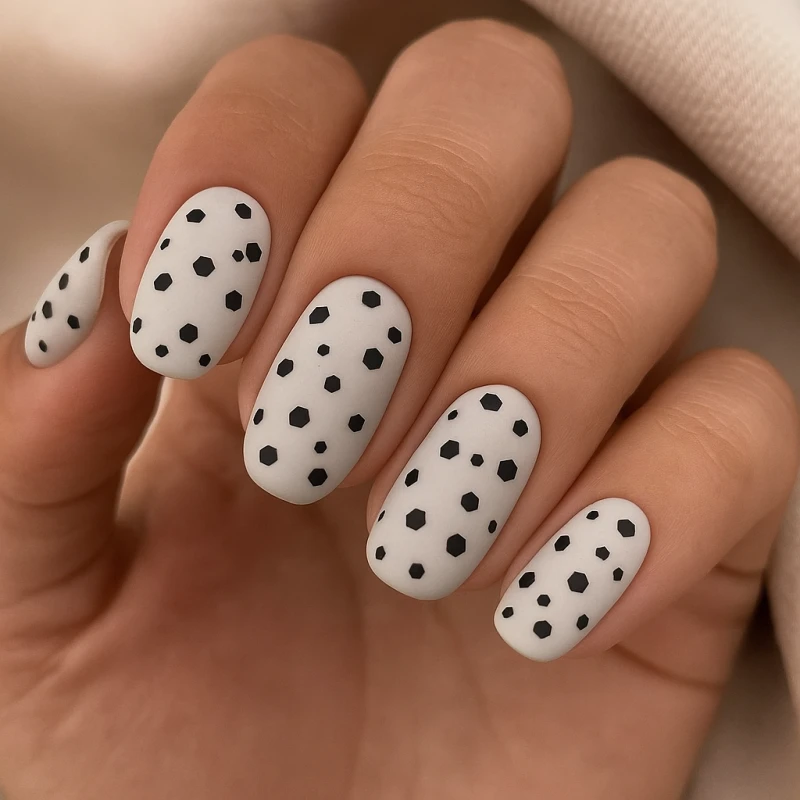 Топ лак Pretty с черни точки микс размер- без лепкав слой